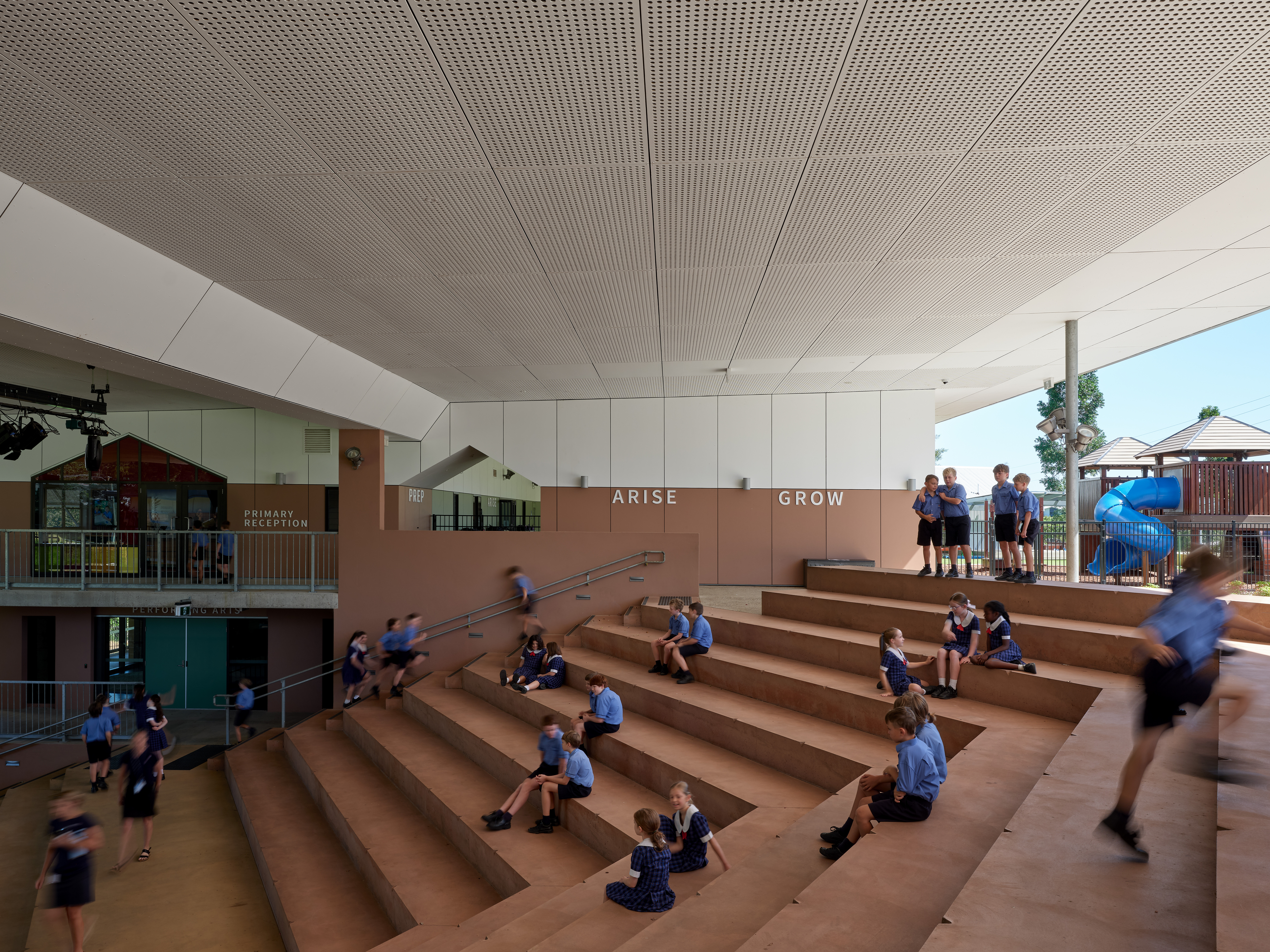 The Suncoast Christian College Primary Precinct brings together three building wings for Administration/Prep, Early Learning, and Years 1-6, arranged around a Primary Commons where the whole community can gather, arrive, and depart each day. The weather-protected Primary Commons is a space for daily performance of ceremony, spirituality, music, drama, dance, and play. This design of the Primary Precinct and the associated learning environments captures the joy of being part of this learning community.